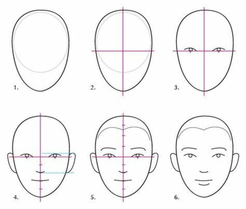 ![Этапы рисования лица]()