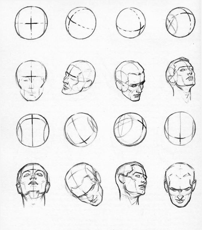 ![Ракурсы головы для рисования]()