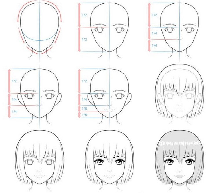 Как нарисовать аниме голову поэтапно