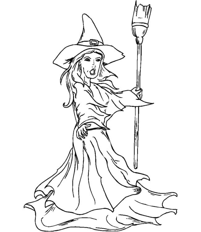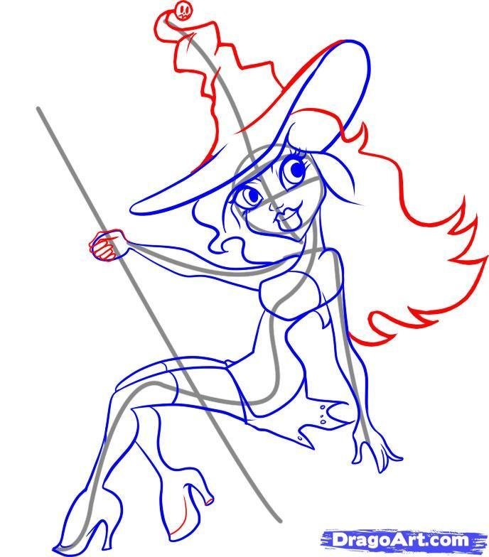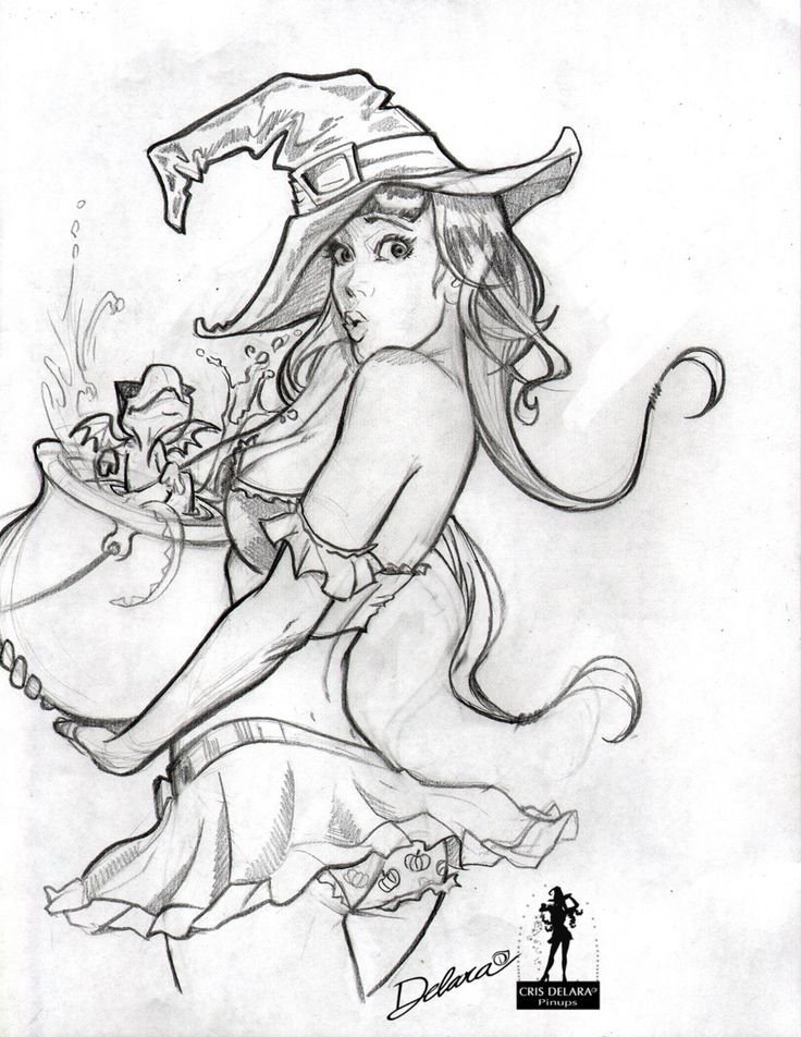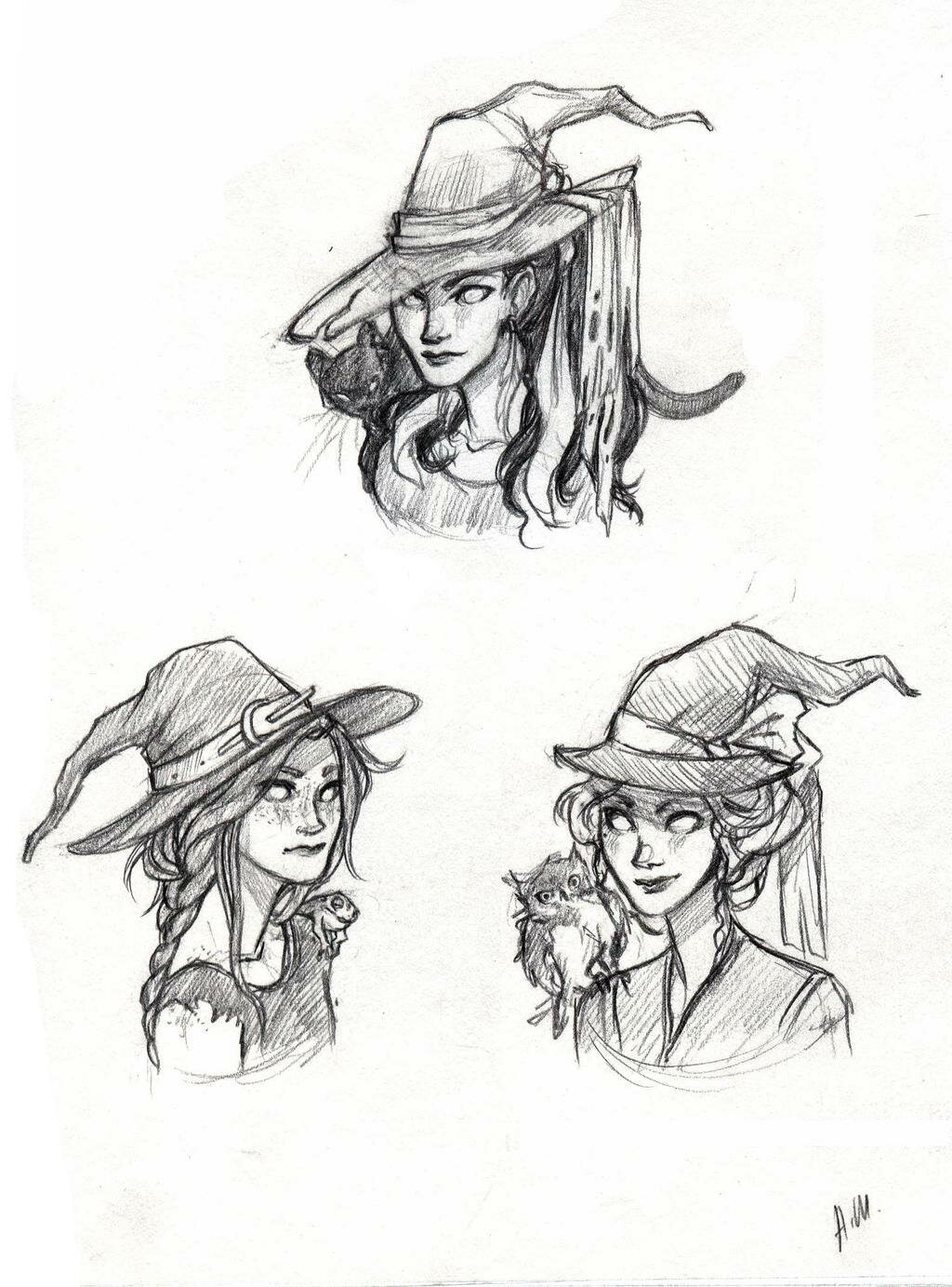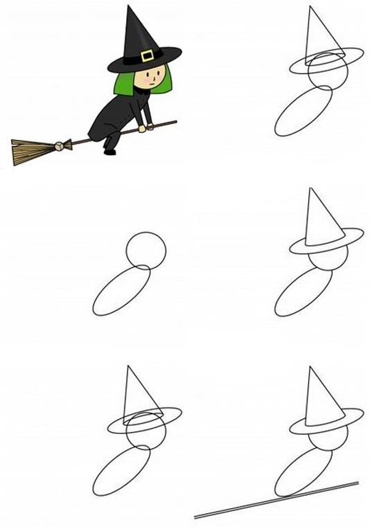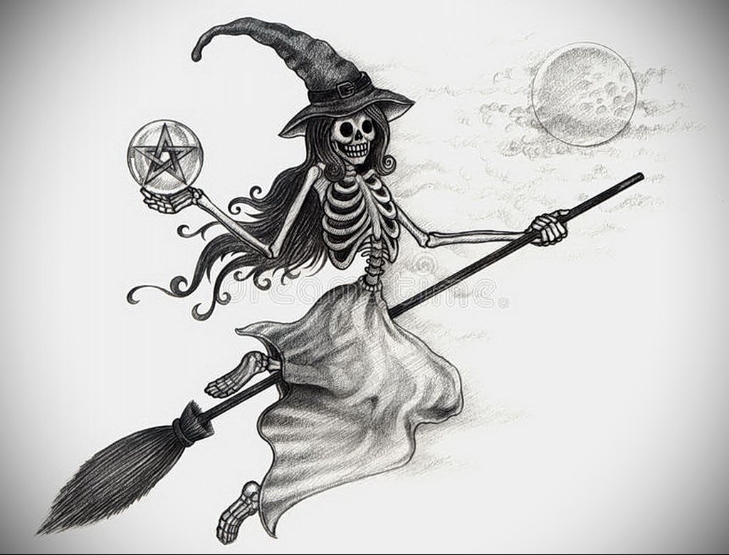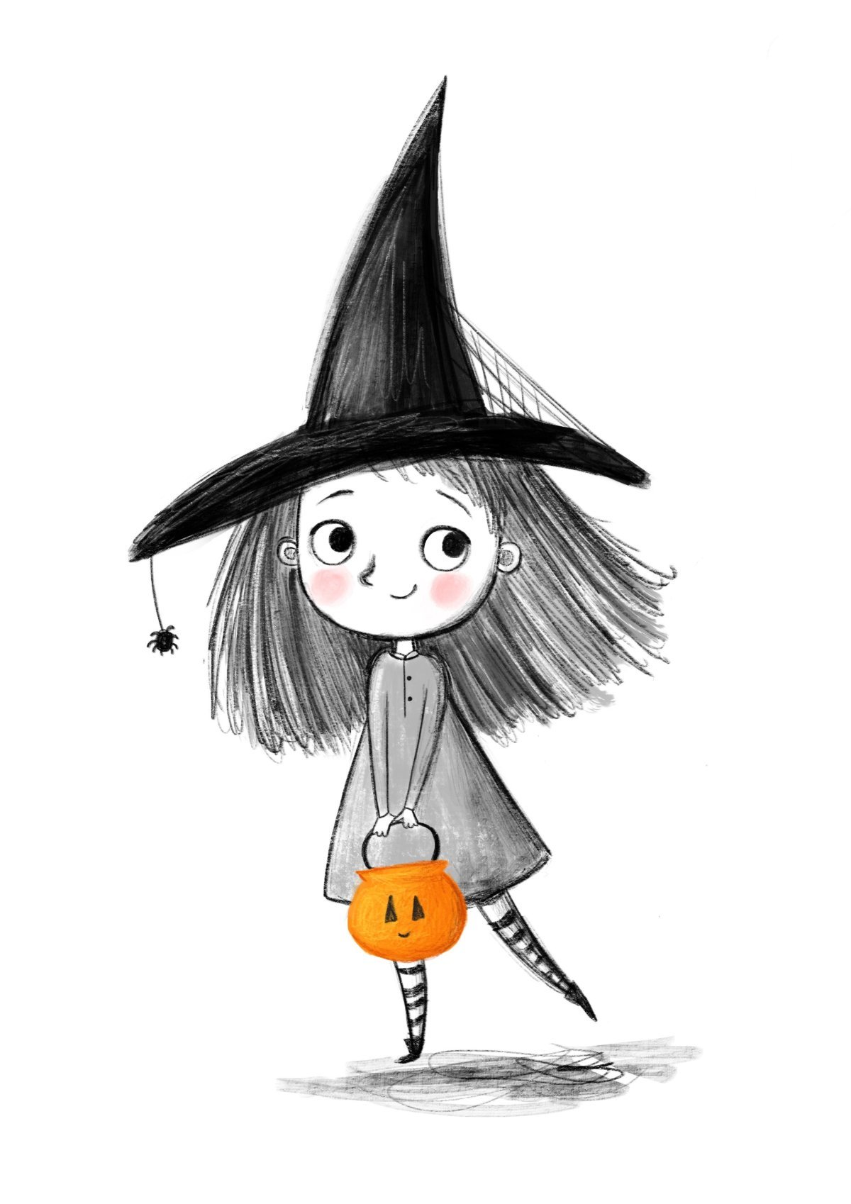 ![Рисунки на Хэллоуин карандашом ведьма]()