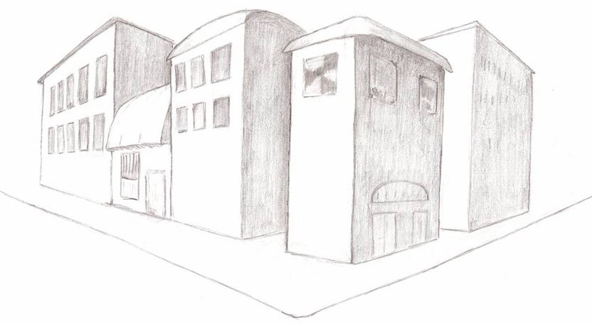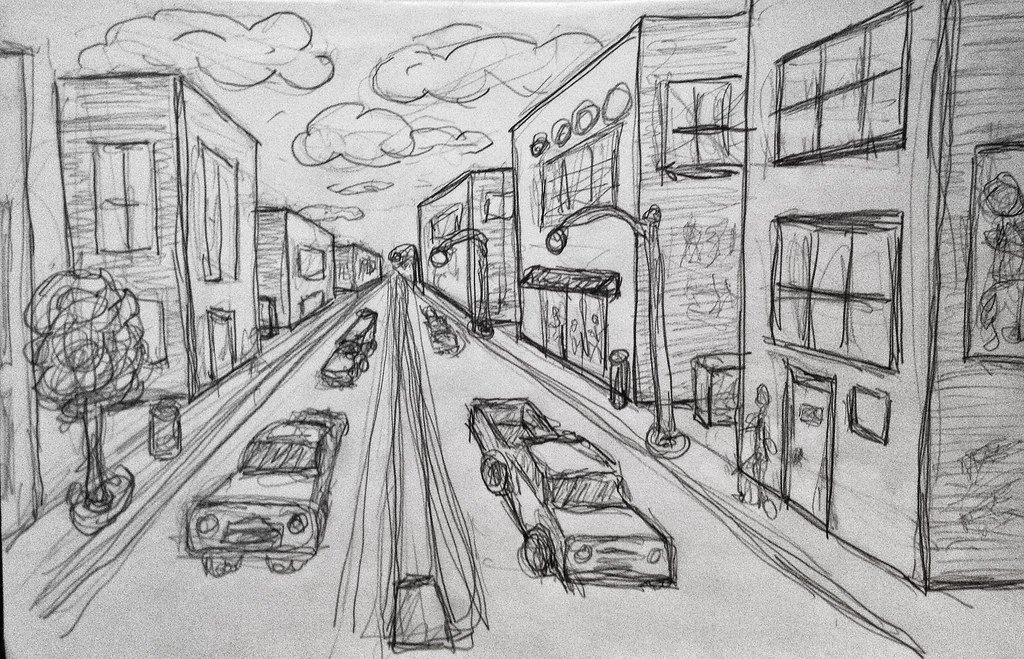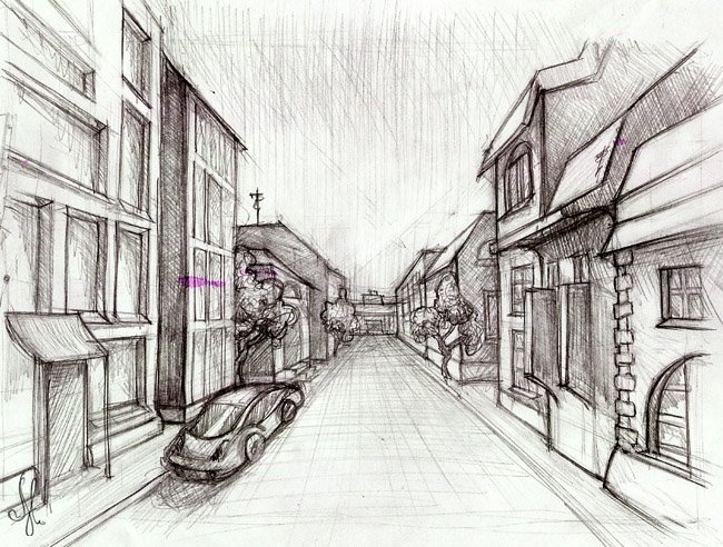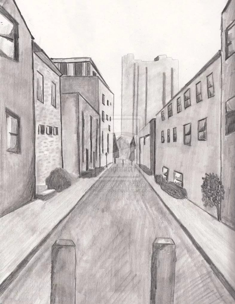 Улица в перспективе карандашом простой