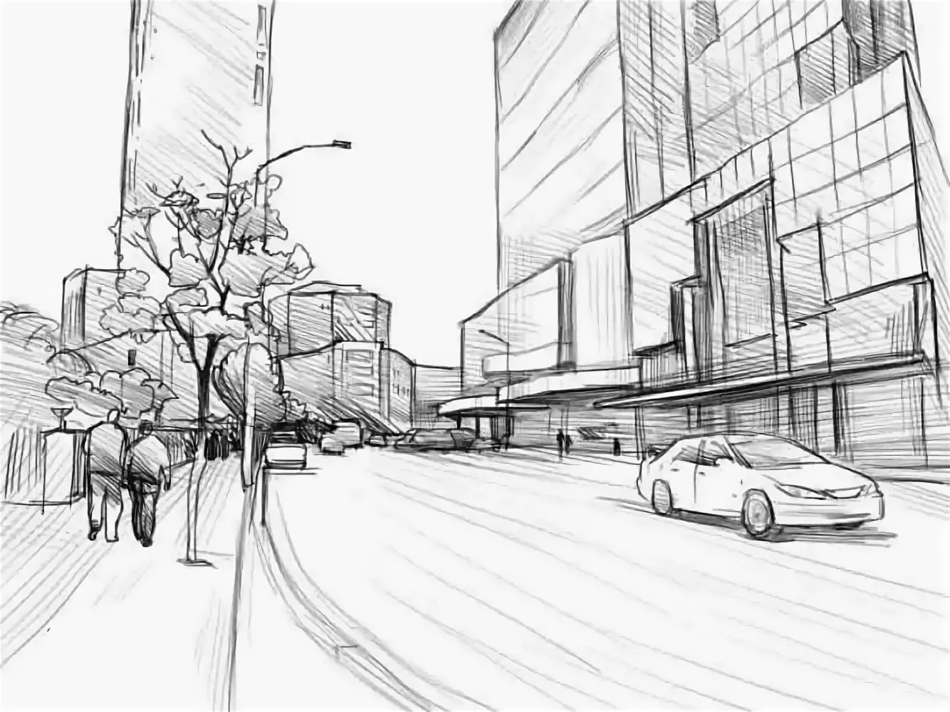 ![Зарисовка города линейная перспектива]()