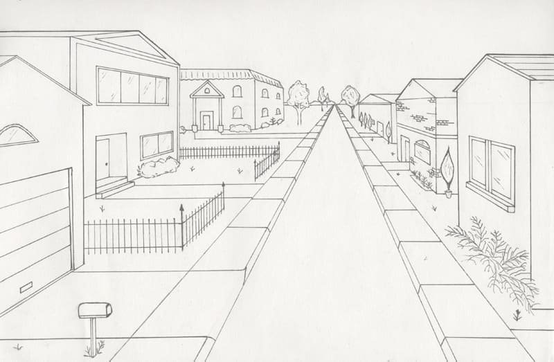 Линейная перспектива улицы карандашом