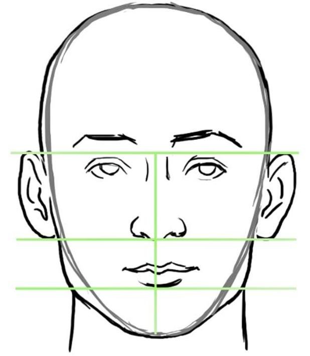 ![Пропорции лица человека при рисовании портрета схема]()