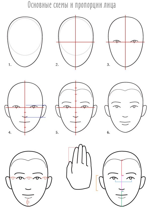 Пропорции лица человека при рисовании портрета схема