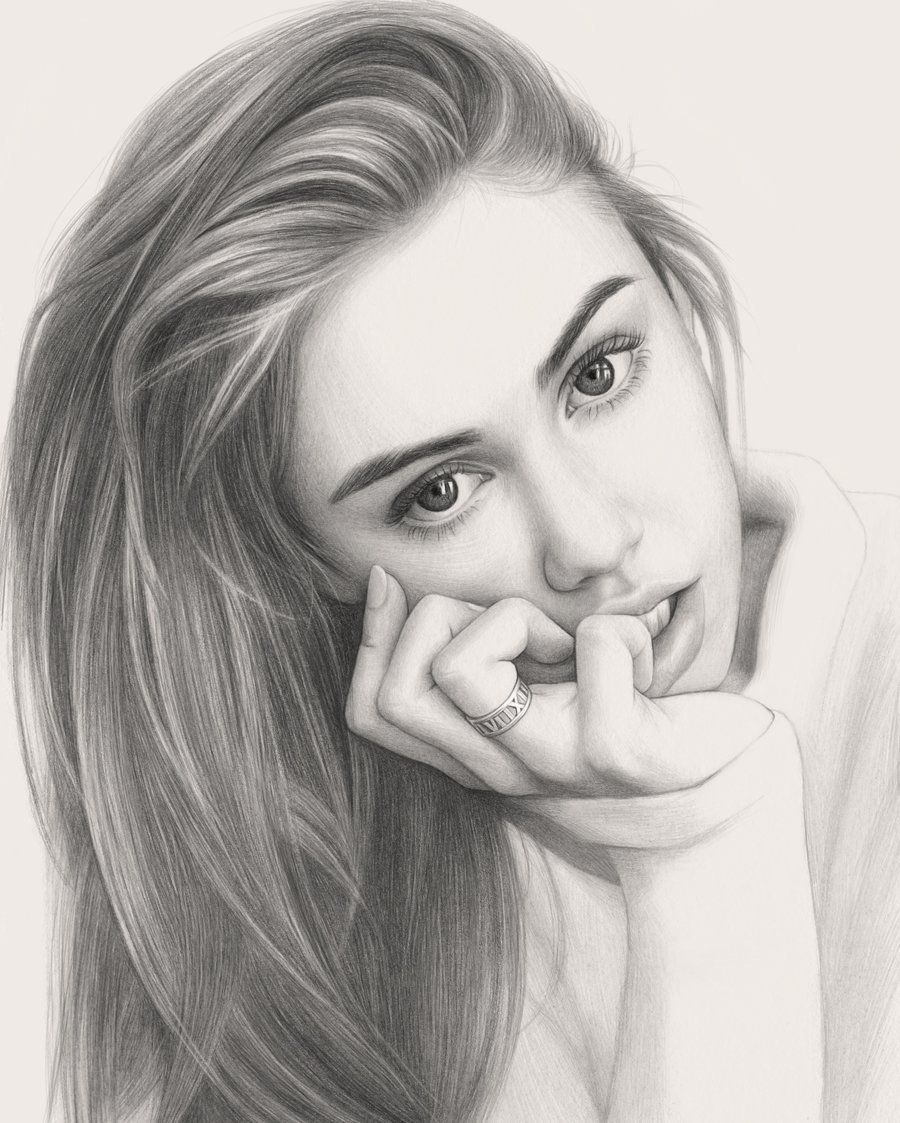 ![Портрет юли Гаврилины карандашом для срисовки]()