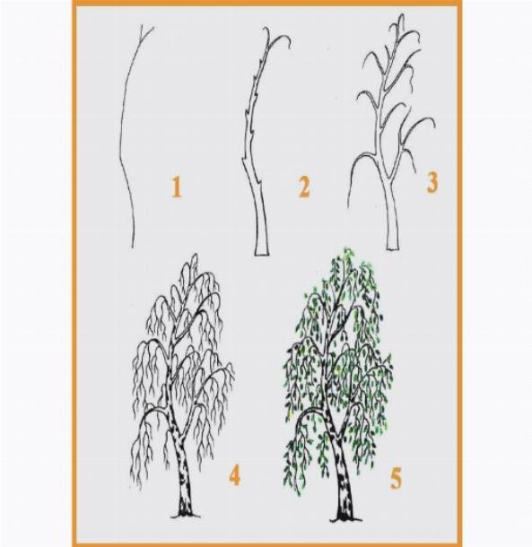 Поэтапность рисования березы