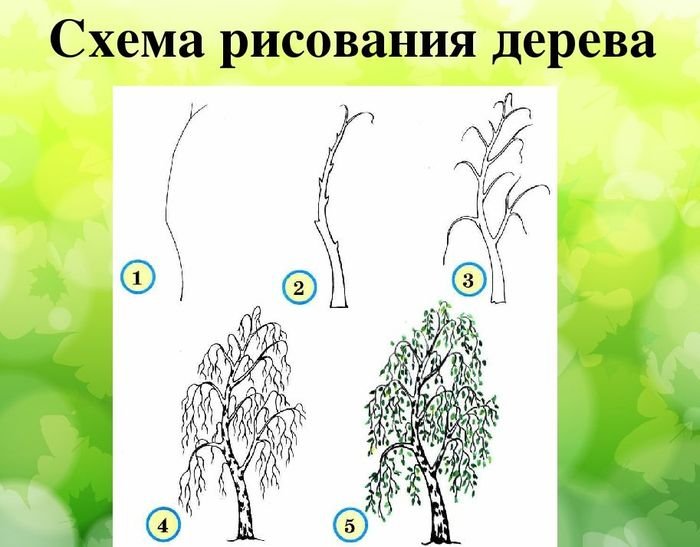Рисунок березы пошагово