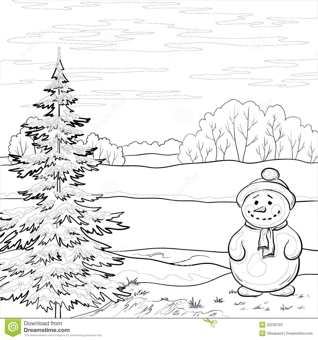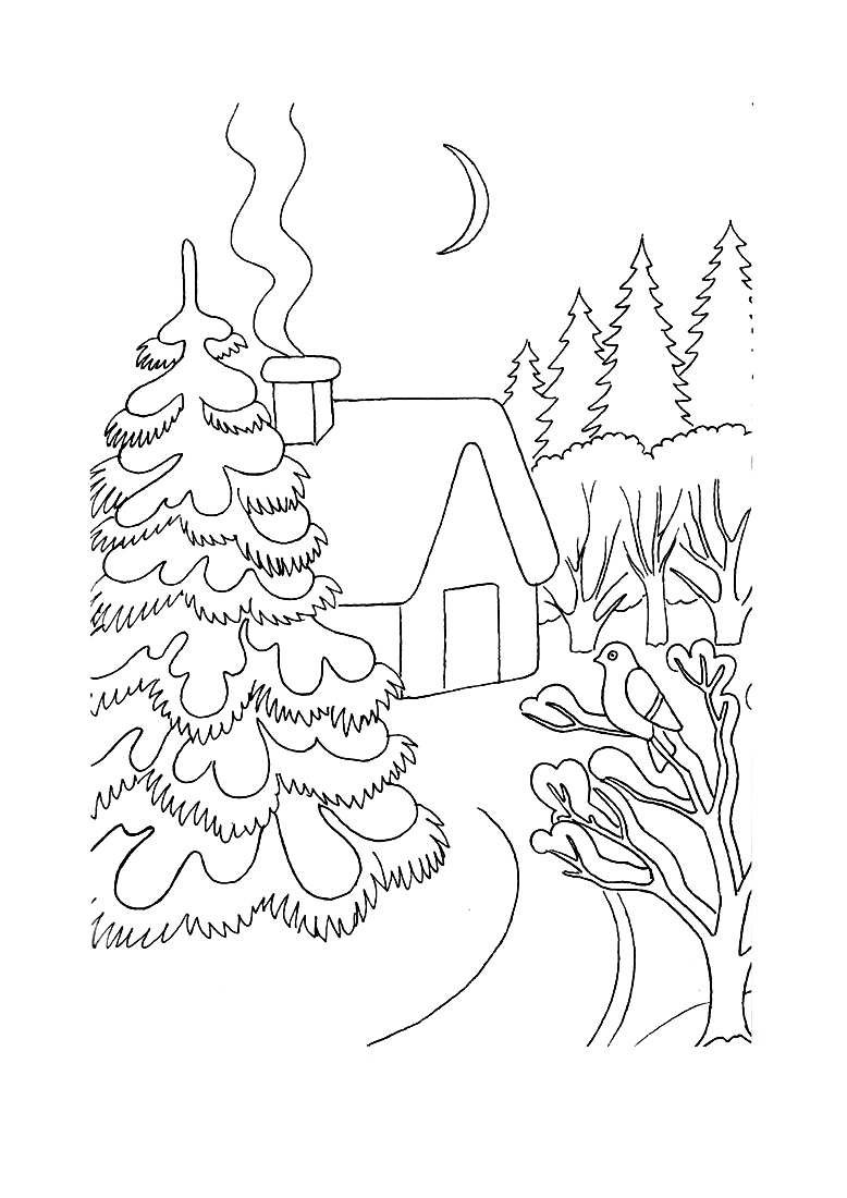 ![Зимний пейзаж раскраска]()