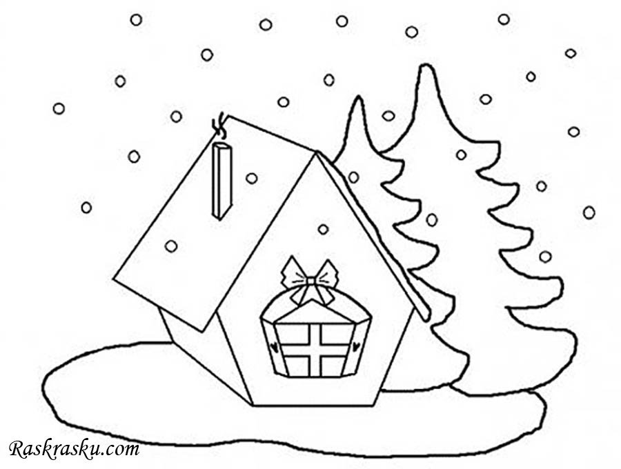 ![Раскраска зимний дом]()