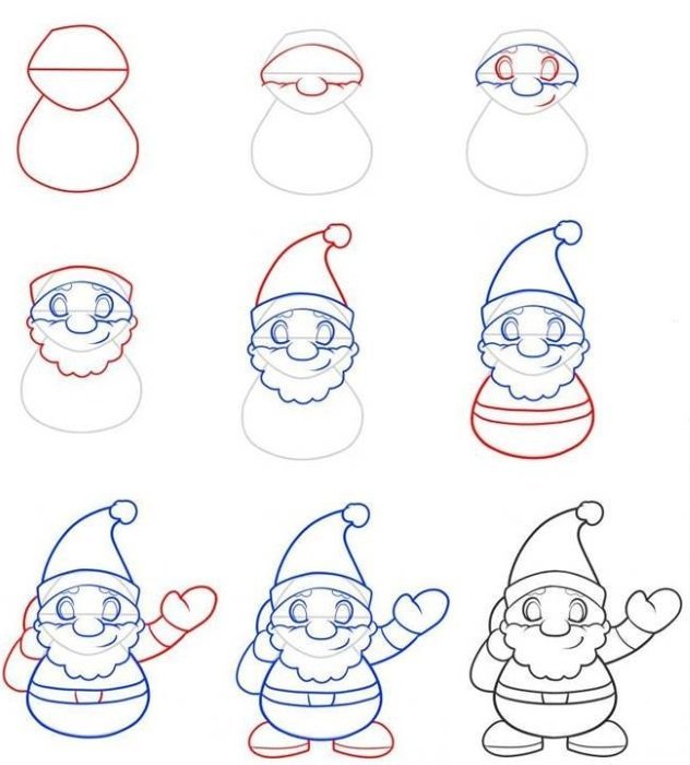 ![Поэтапное рисование Деда Мороза и Снегурочки]()