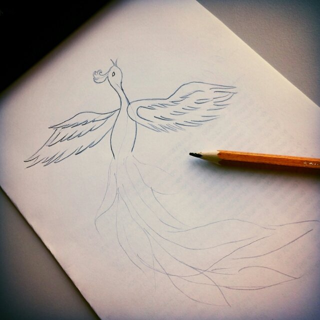 ![Птица Феникс карандашом]()