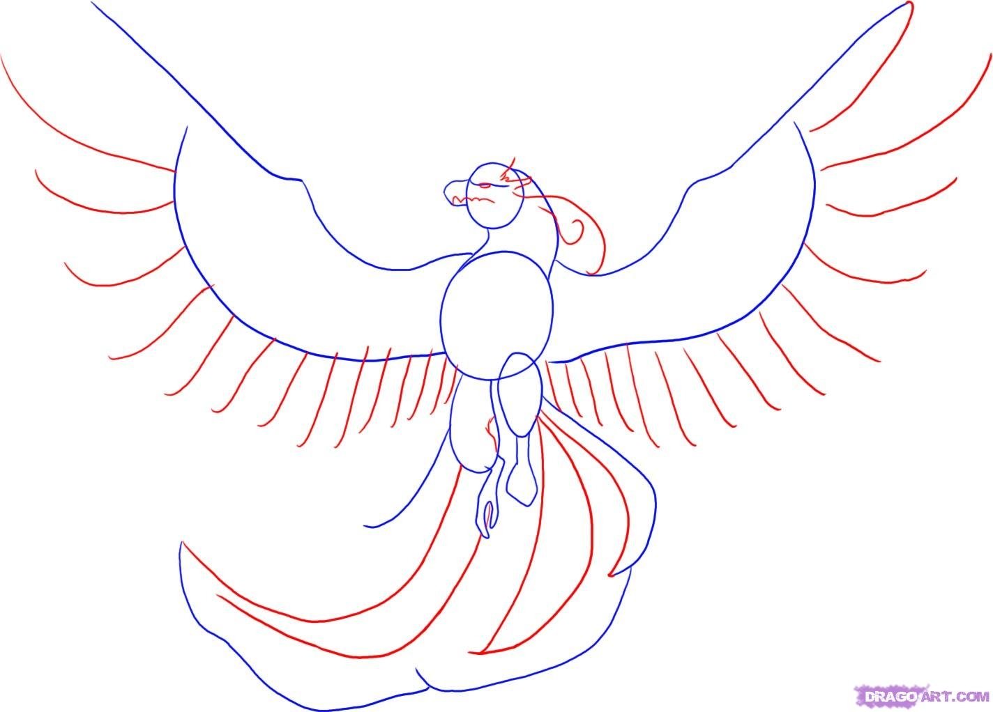 ![Птица Феникс поэтапное рисование]()