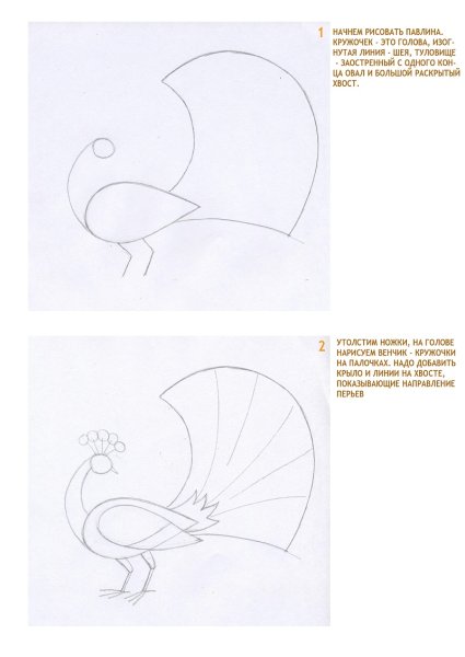 ![Поэтапное рисование павлина для детей]()