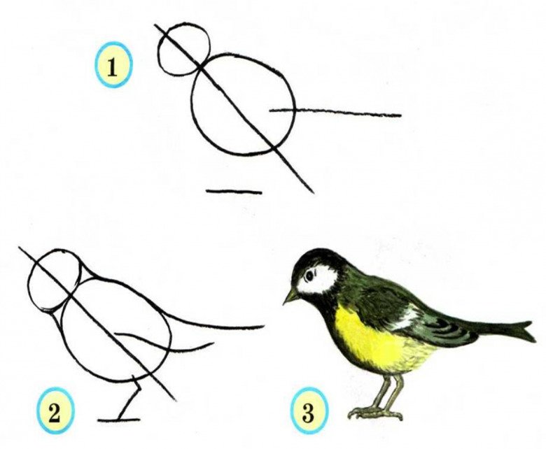 Рисование синичка пошагово