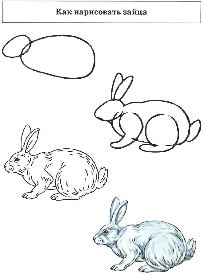 ![Рисование зайца пошагово]()