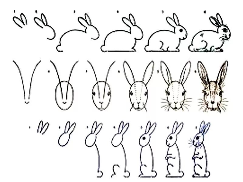 ![Кролик пошаговый рисунок]()
