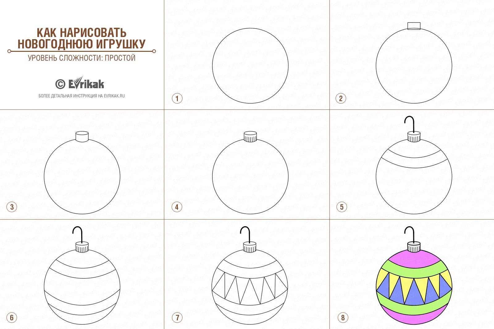Поэтапное рисование новогоднего шара