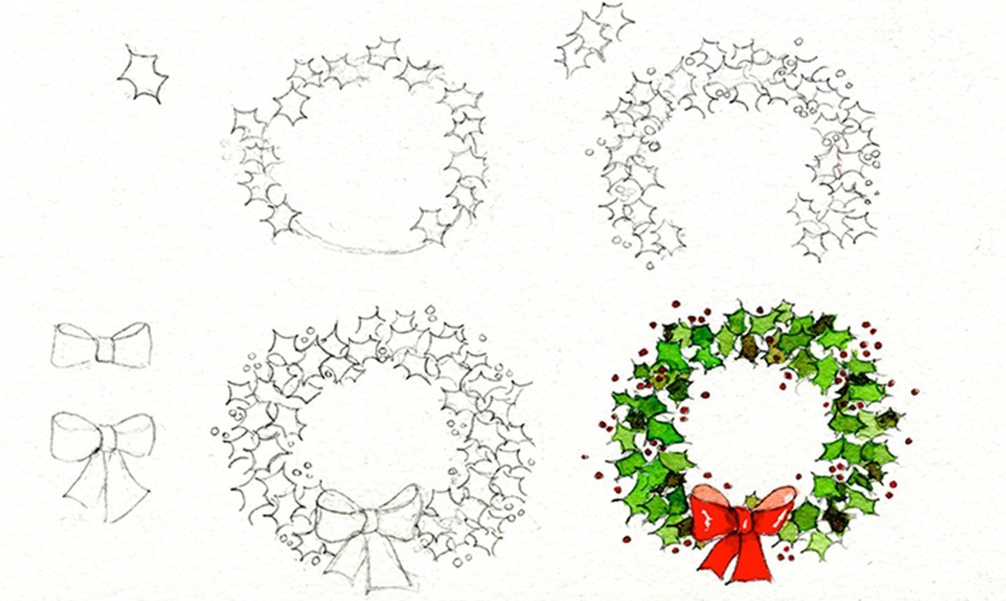 ![Венок новогодний рисунок карандашом легко (43 фото)]()