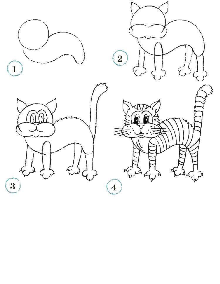 Схема рисования кошки для детей старшей группы