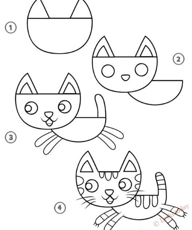 ![Схема рисования кошки для детей]()