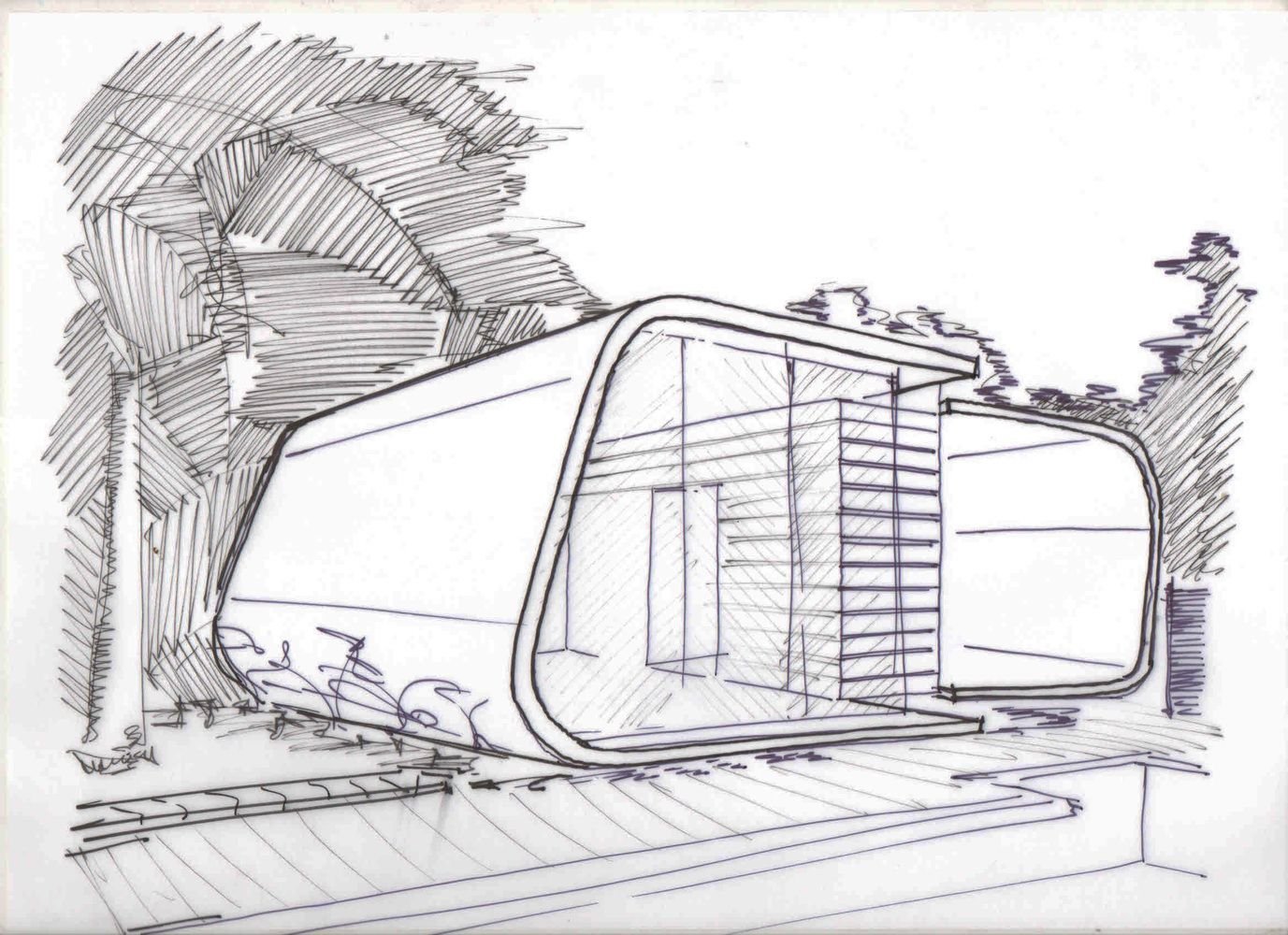 ![Эскиз здания в современном стиле стеклянный]()
