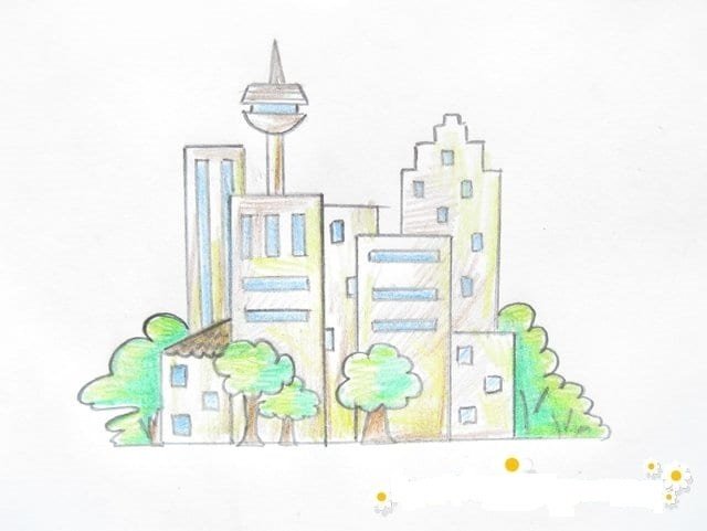 ![Здания будущего рисунки карандашом]()