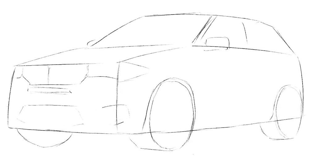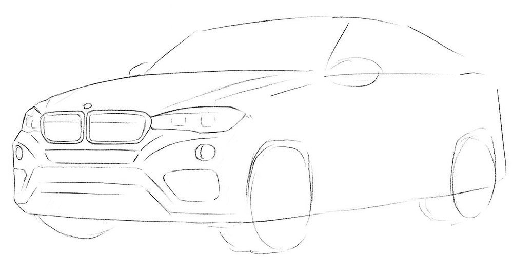 Нарисовать карандашом БМВ Икс 5 вид.сбоку