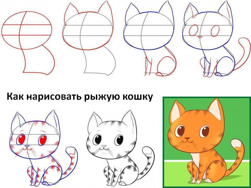 Поэтапное рисование кошки картинки