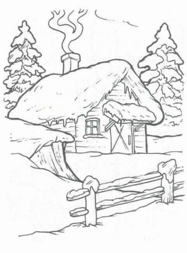 Зимний домик раскраска для детей