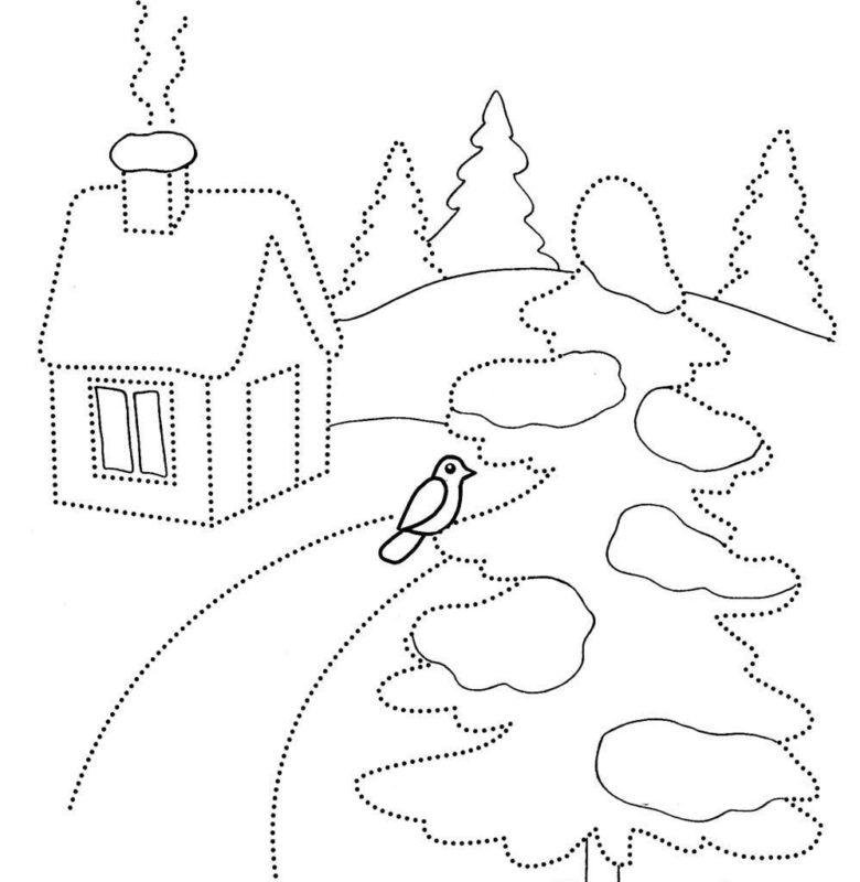 Зимний пейзаж раскраска для детей