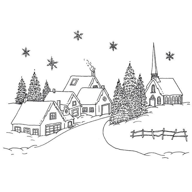 Зимняя деревня раскраска