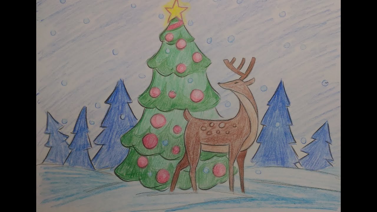 Срисовать оленей на новогоднюю тему