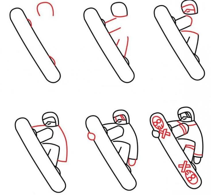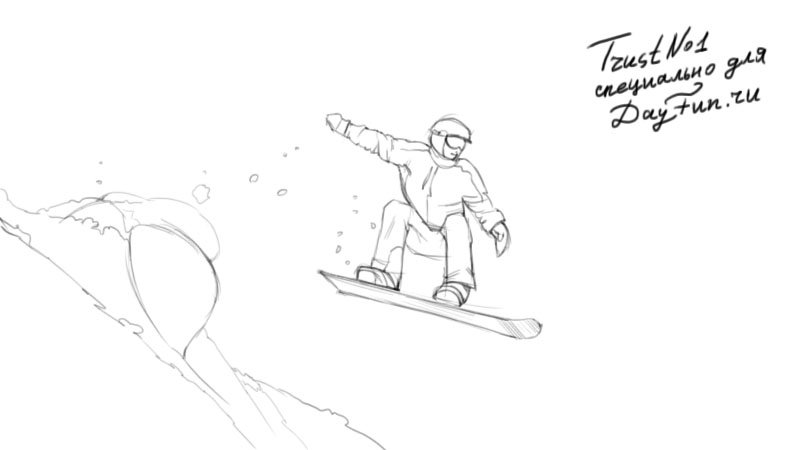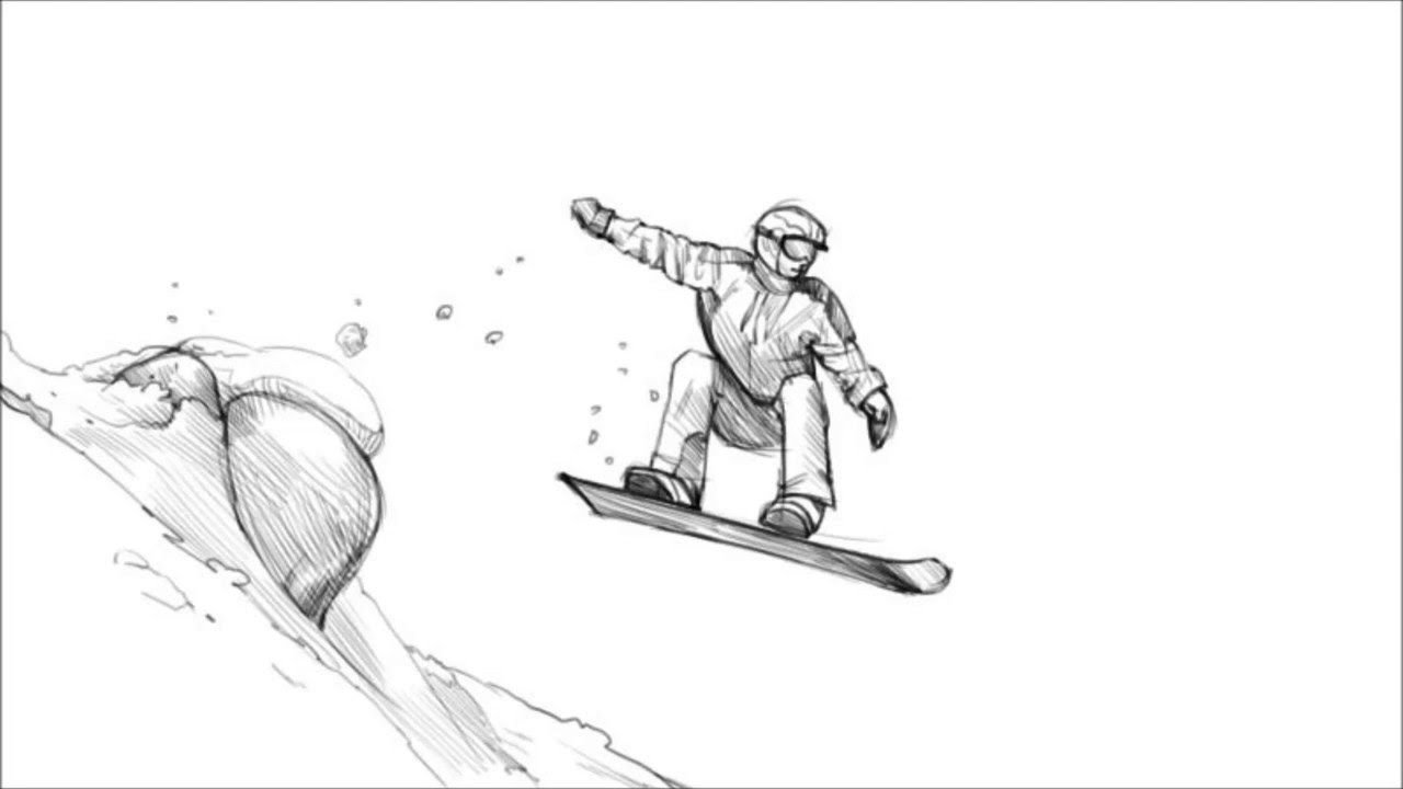 ![Рисунки сноубордистов карандашом]()