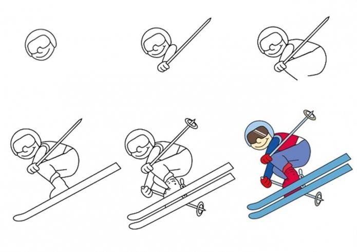 Зимние виды спорта поэтапное рисование