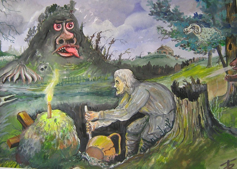 ![Иллюстрация к сказке Заколдованное место Гоголь]()