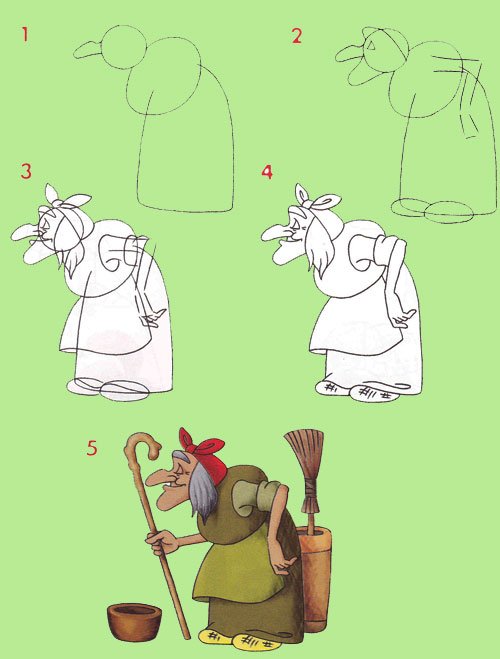 Баба Яга рисунок карандашом