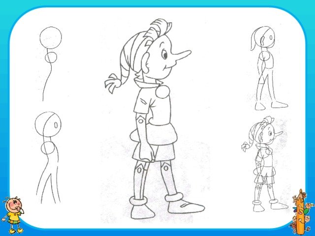 ![Буратино поэтапное рисование]()