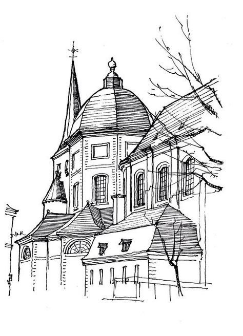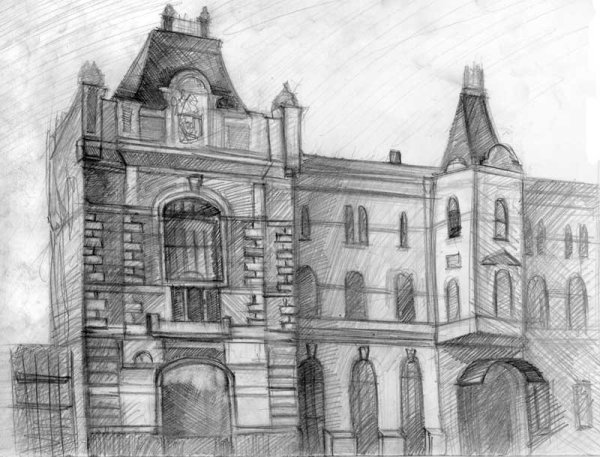 ![Карандашный набросок здания]()
