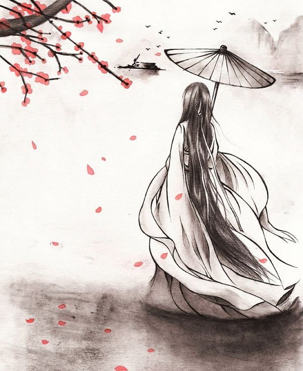 ![Японские рисунки карандашом]()