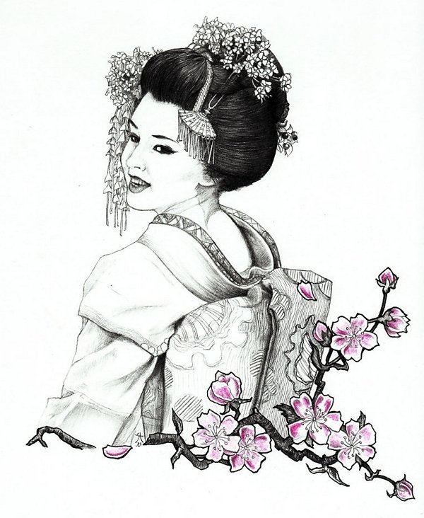 Японка рисунок карандашом