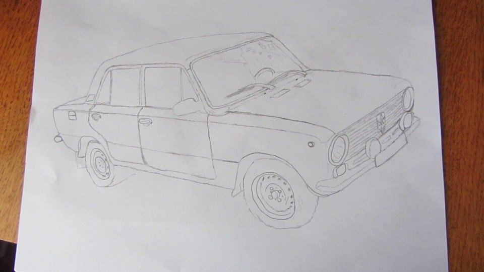 ![Рисунок ВАЗ 2101 карандашом спереди]()