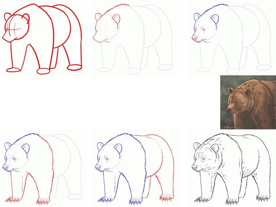![Бурый медведь поэтапное рисование]()