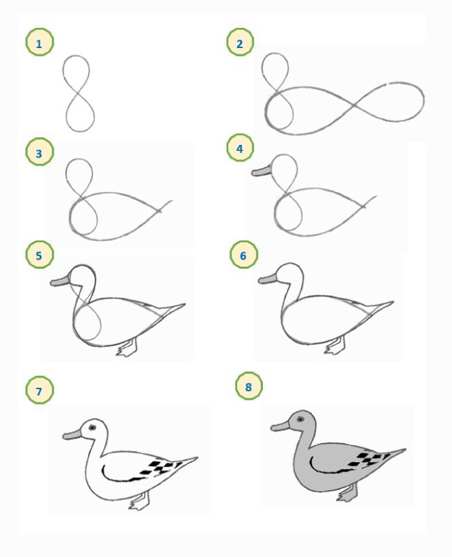Как нарисовать утку карандашом поэтапно для детей