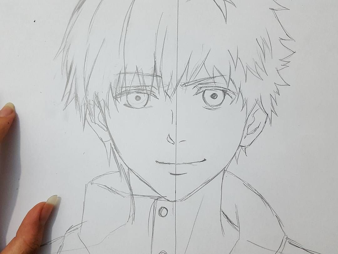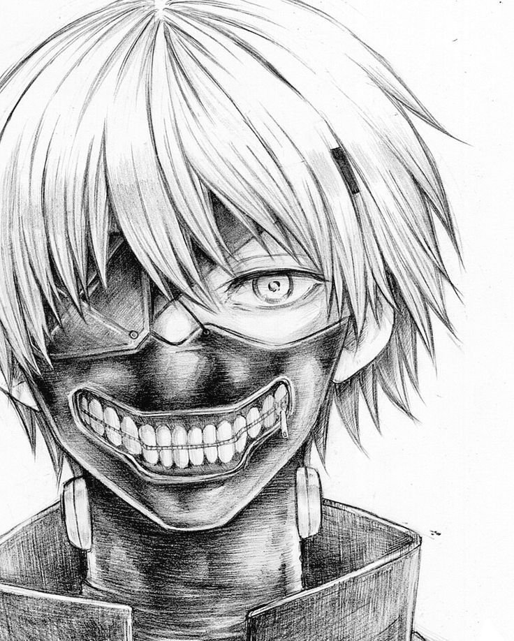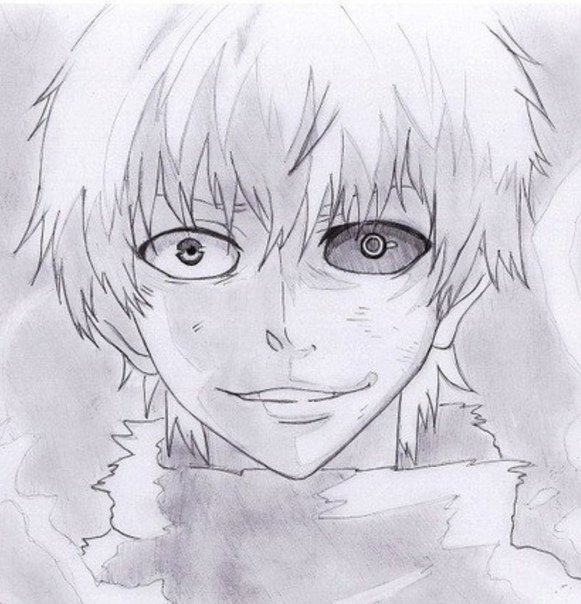 Токийский гуль нарисовать Кен Канеки поэтапно карандашом