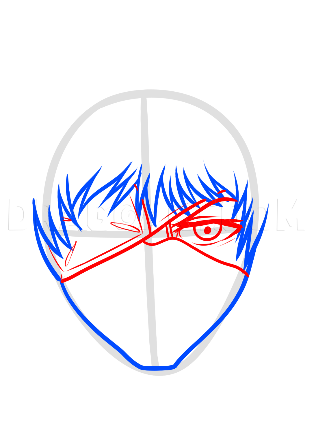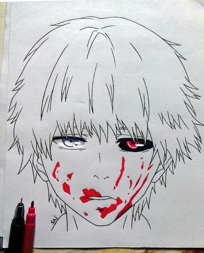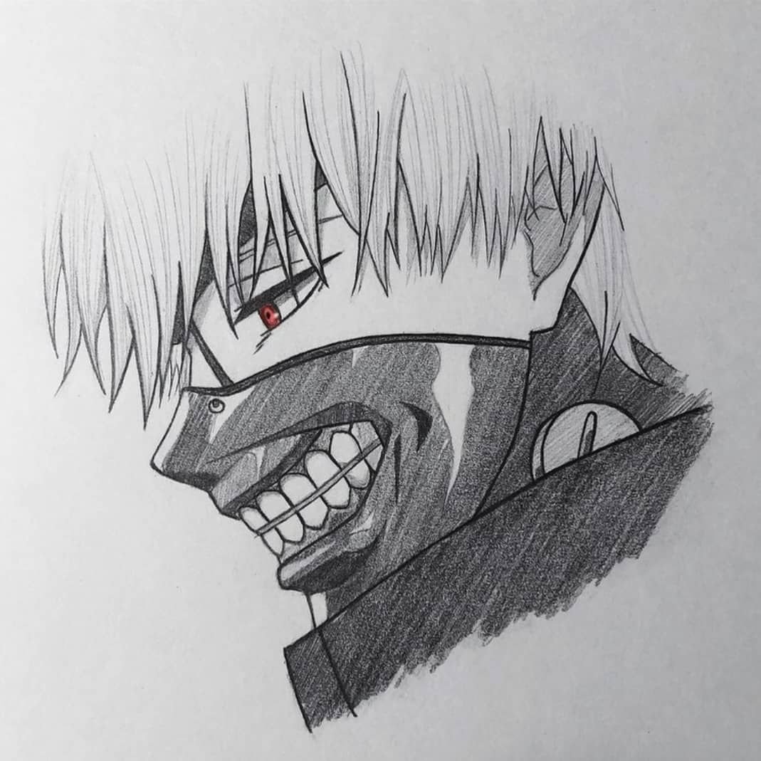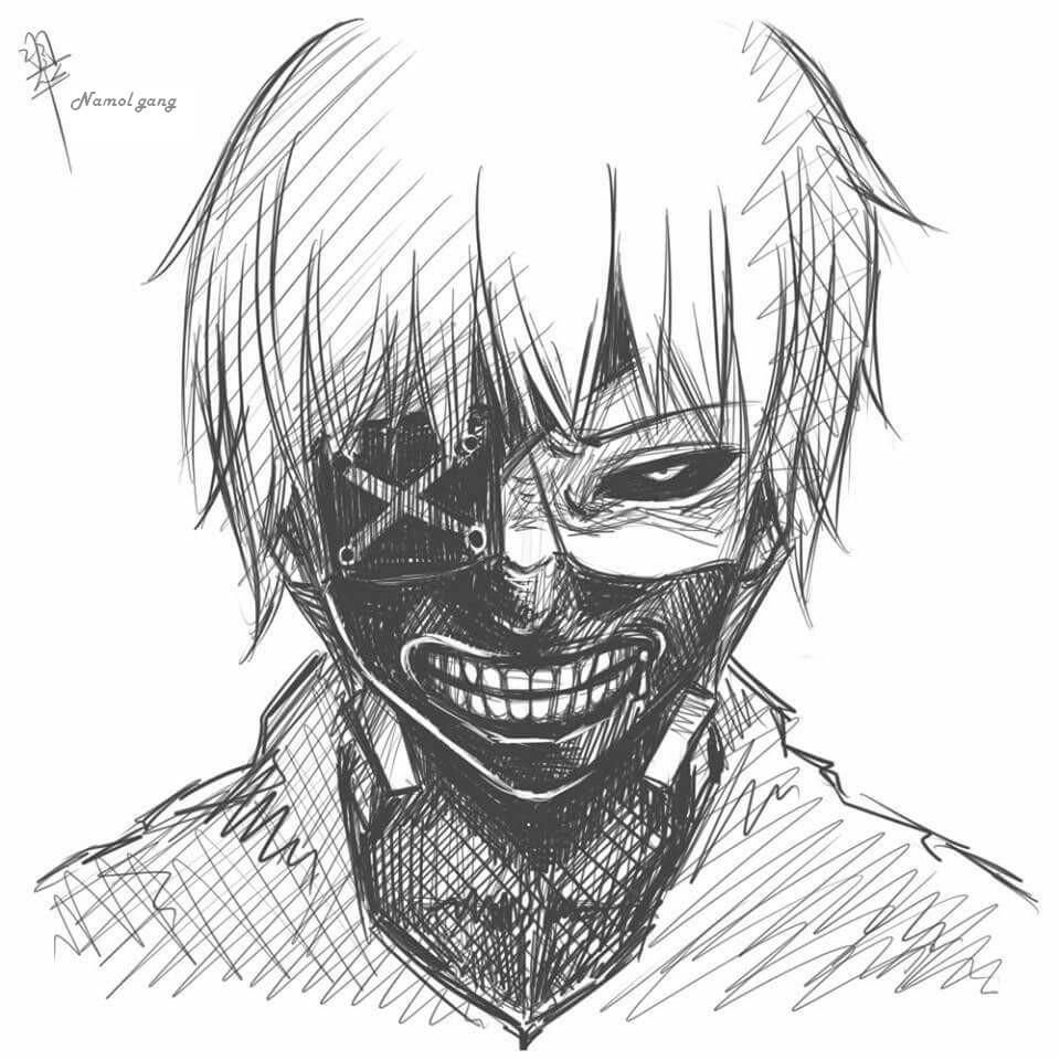 ![Токийский гуль нарисовать Кен Канеки поэтапно карандашом]()