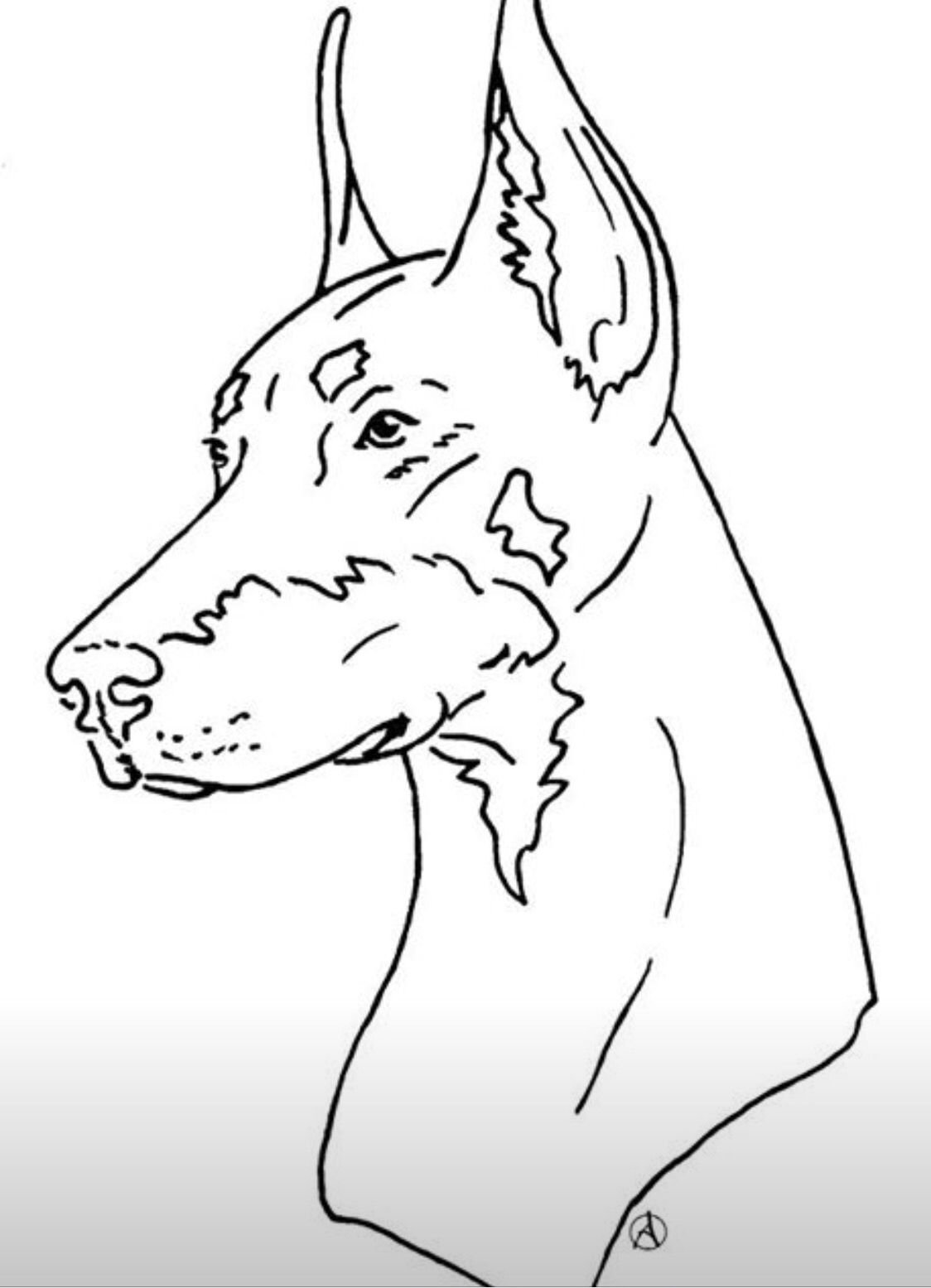 ![Доберман раскраска морда]()