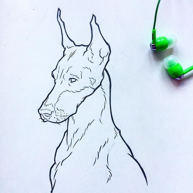 ![Доберман набросок]()