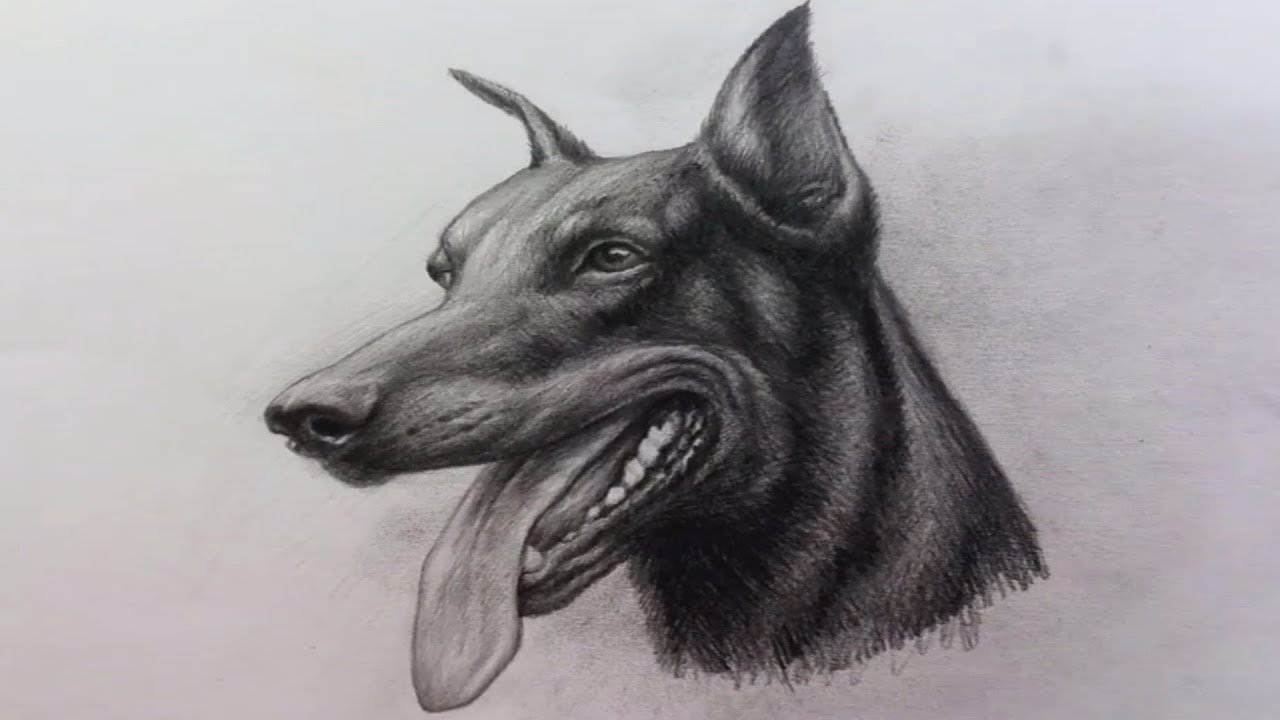 ![Доберман пинчер карандашом]()