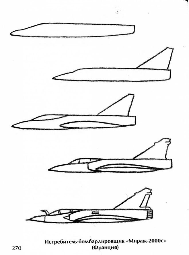 ![Рисунки пошагово самолетов и танков]()